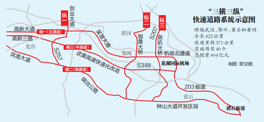 目前,“三横三纵”快速道路系统建设正在全力推进,将进一步提升武汉都市圈东部地区的互联互通。
