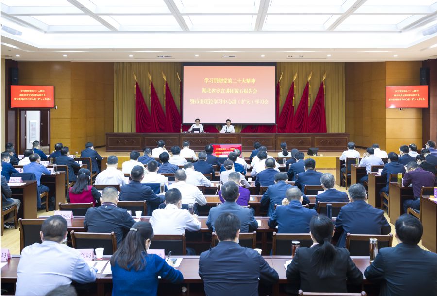 郄英才强调,各级各部门要以此次宣讲为契机,对标对表习近平总书记关于学习宣传贯彻党的二十大精神的重要指示精神和《中共中央关于认真学习宣传贯彻党的二十大精神的决定》要求,坚持领导带头学习、集中培训学习、认真组织宣传、用心用情宣讲,持续掀起学习宣传党的二十大精神热潮。要以学习宣传贯彻党的二十大精神为强大动力,提振精神状态,进一步抓实抓细当前各项重点工作,把党的二十大战略部署细化实化为黄石高质量发展的目标任务和生动实践。