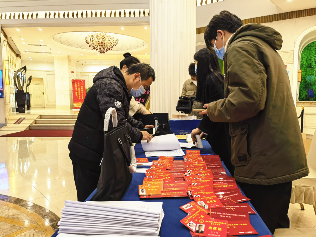 人大代表们开始向大会报到