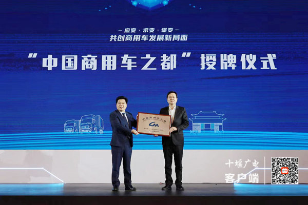 中国汽车工业协会授予十堰市“中国商用车之都”称号,并现场授牌。