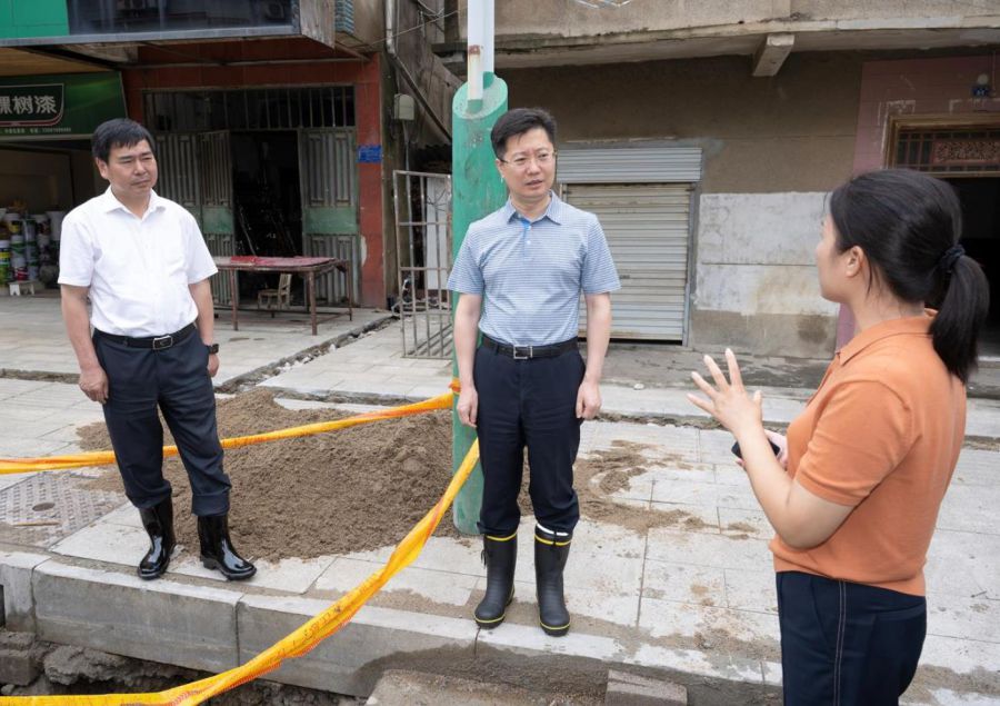在渍水点大冶市保安镇三元名居小区,居民利用直排涵洞排除积水,积极进行灾后自救。郄英才叮嘱当地负责同志,要对进水房屋进行全面排查确保居民居住安全,同时做好雨水退后清淤消杀等工作,及时帮助群众解决生活不便问题。在大冶市保安口民垸堤防(保安湖泵站),郄英才详细了解泵站抽排能力,强调要加快进行抽排水工作,确保垸内良田旱涝保收。