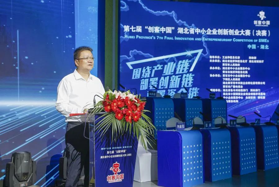 25日, 围绕产业链、部署创新链、配置资金链——第七届“创客中国”湖北省中小企业创新创业大赛(决赛)在我市举行。省经济和信息化厅党组书记、厅长刘海军,市委副书记、市长吴之凌参加活动并致辞。