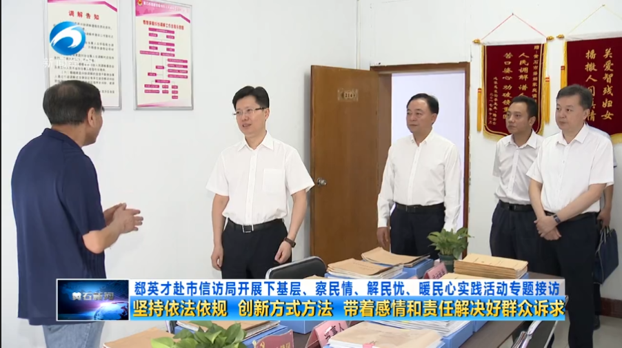 7号,市委书记郄英才赴市信访局开展下基层、察民情、解民忧、暖民心实践活动专题接访,逐个研究信访积案化解工作。他强调,要深入学习贯彻习近平总书记关于加强和改进人民信访工作的重要思想和重要指示批示精神,用心用情为民排忧解难,依法依规解决群众合理诉求,全力维护社会大局和谐稳定。
