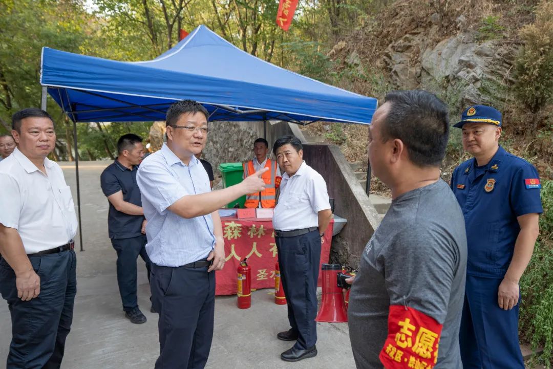 随后,吴之凌前往圣水古泉寺登山入口,检查森林防火工作和林长制落实情况。他指出,当前国庆假期临近,秋季森林防灭火面临更多挑战,要压实林长制责任,加大巡查力度,把牢上山关口,坚决杜绝火种进山,严防森林火险发生。要提前做好人员力量下沉准备,备足防灭火工具,确保一旦发生火情,能够快速响应、打早打小,切实保护好人民群众的生命财产安全和森林资源安全。