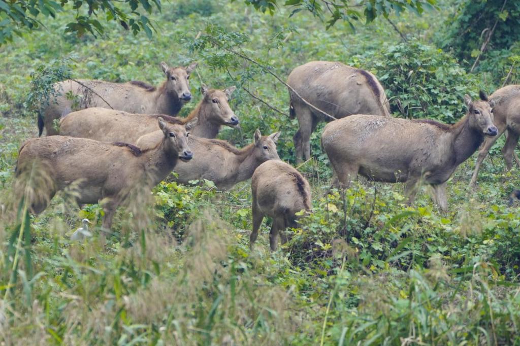 然而,至晚清,由于狩猎和战乱,麋鹿在中国几近灭绝。1985年,《中英关于麋鹿重引进的协议》签署,22头麋鹿从英国回归中国。今年正值麋鹿回归40周年,经过多年保护,麋鹿种群已在全国6个区域恢复,数量达1.5万头,居全球第一。