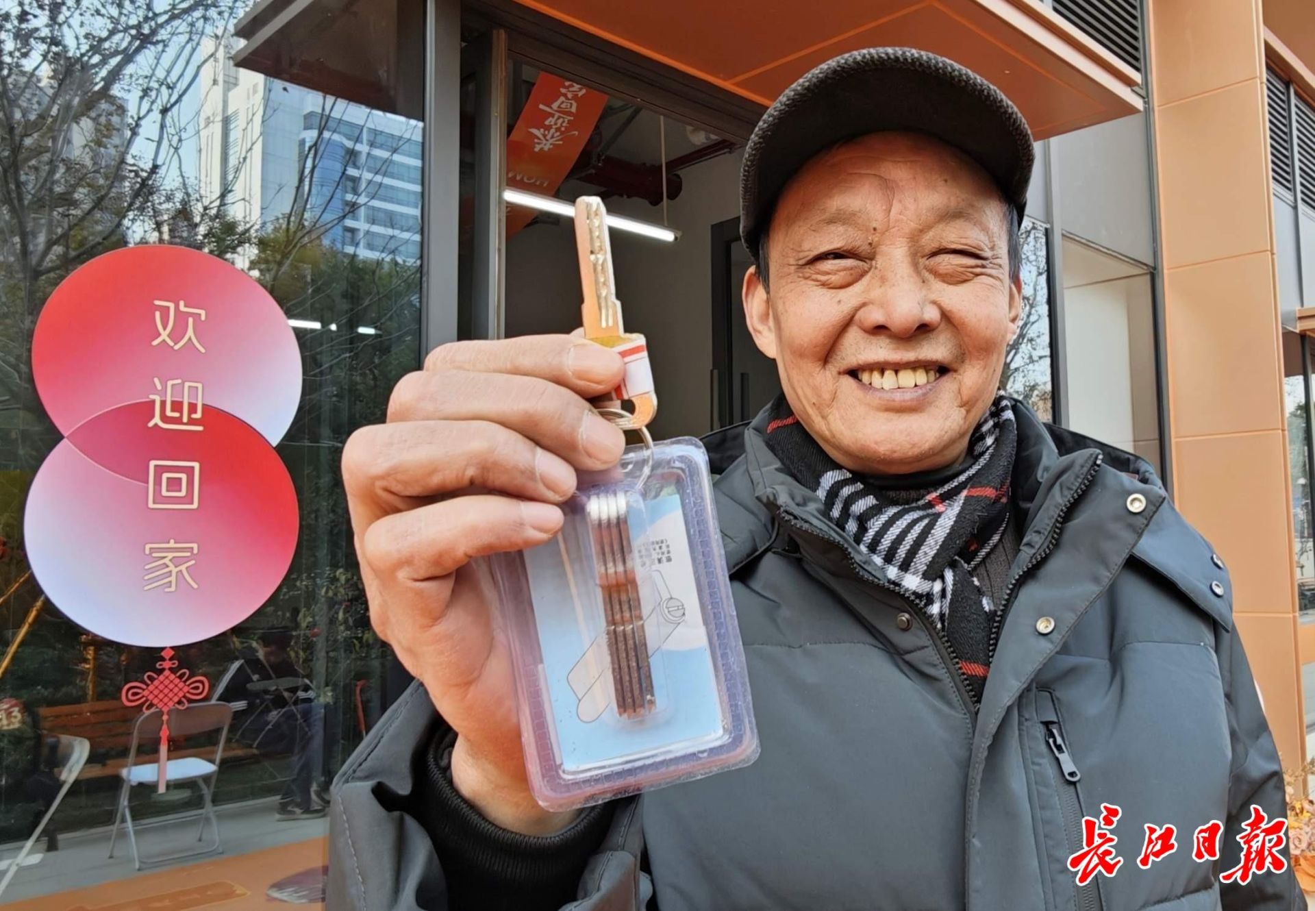 喜提新房钥匙的居民韩国斌开心不已。 记者何晓刚 摄