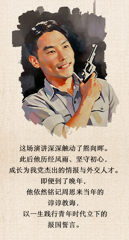 这场演讲深深触动了熊向晖。此后他历经风雨、坚守初心,成长为我党杰出的情报与外交人才。即便到了晚年,他依然铭记周恩来当年的谆谆教诲,以一生践行青年时代立下的报国誓言。