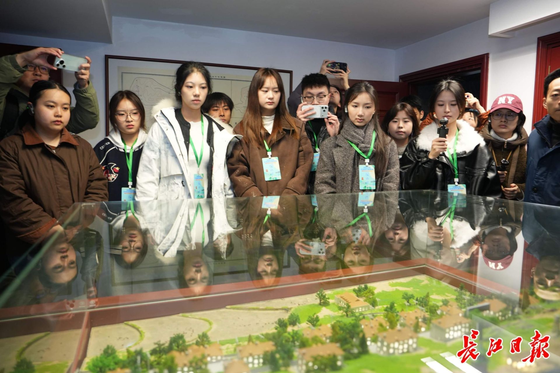 2026全国大学生社会实践团在周恩来旧居参观“珞珈山十八栋”模型。 记者彭年 摄