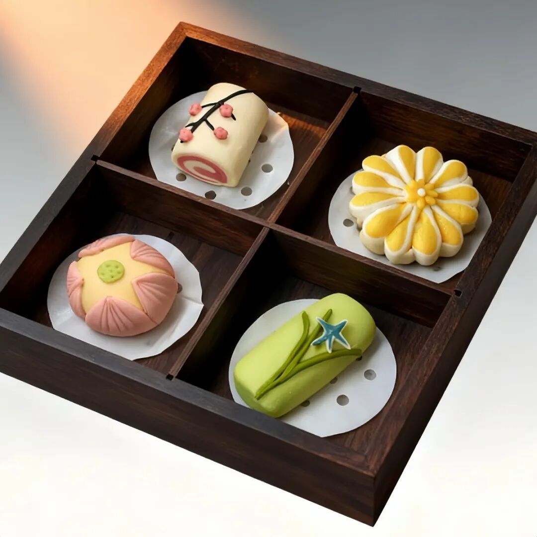 “四时芳谱”产品形态上参考了花式酥点的“捏塑+模塑”的方法通过手工捏制和工具的造型还原植物肌理春兰秋菊、夏荷冬梅外观简约典雅处处透出中式美学